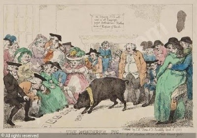 Some highlights for me included Richard Barnett’s talk on the history of the fair. Being a sucker for Hogarth & Rowlandson, I was of course drawn in with Richard’s beautifully illustrated lecture on how these merchant fairs developed into an outlet for letting off necessary steam. The colourful vibrancy of these fairs are seen in the death defying acrobats of individuals and of course the spectacle of the learned pig…
